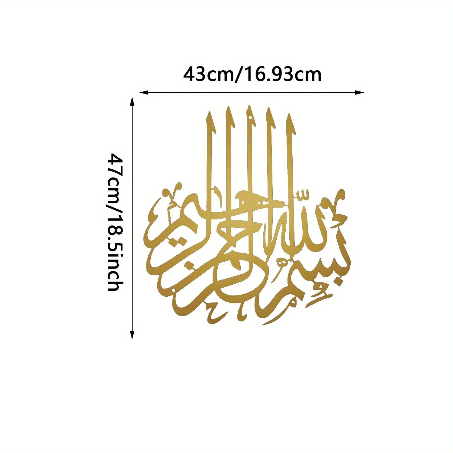 Gracefully expressing faith, gratitude, and spiritual reverence, this 2D flat metal Bismillah Islamic wall decoration features beautifully crafted Arabic calligraphy of Bismillah ir Rahman ir Rahim, a timeless invocation that brings blessings, peace, and divine remembrance into the home. The elegant calligraphic form reflects the depth of Islamic artistic tradition, transforming sacred words into a visually refined symbol of devotion and spiritual harmony.
