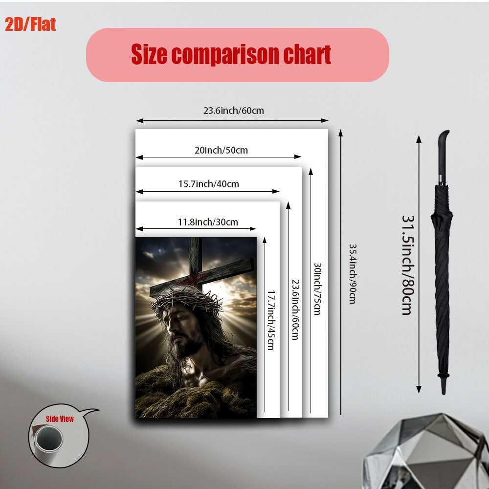 1pc 2D Flat Framed Jesus on Cross Wall Art | Dramatic Clouds and Sunburst Background | Inspirational Home Décor for Living Room, Office, or Cafe | Spiritual Gift for Birthdays, Holidays, or Special Occasions | 2D Flat