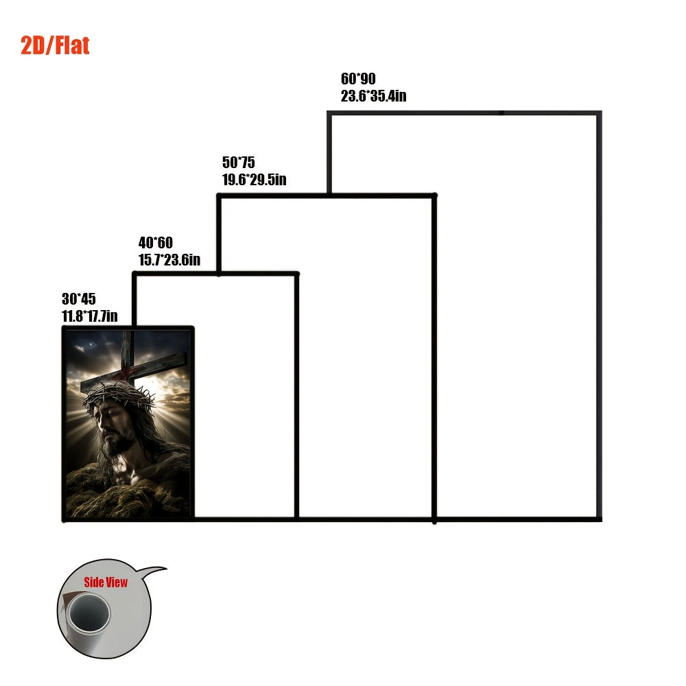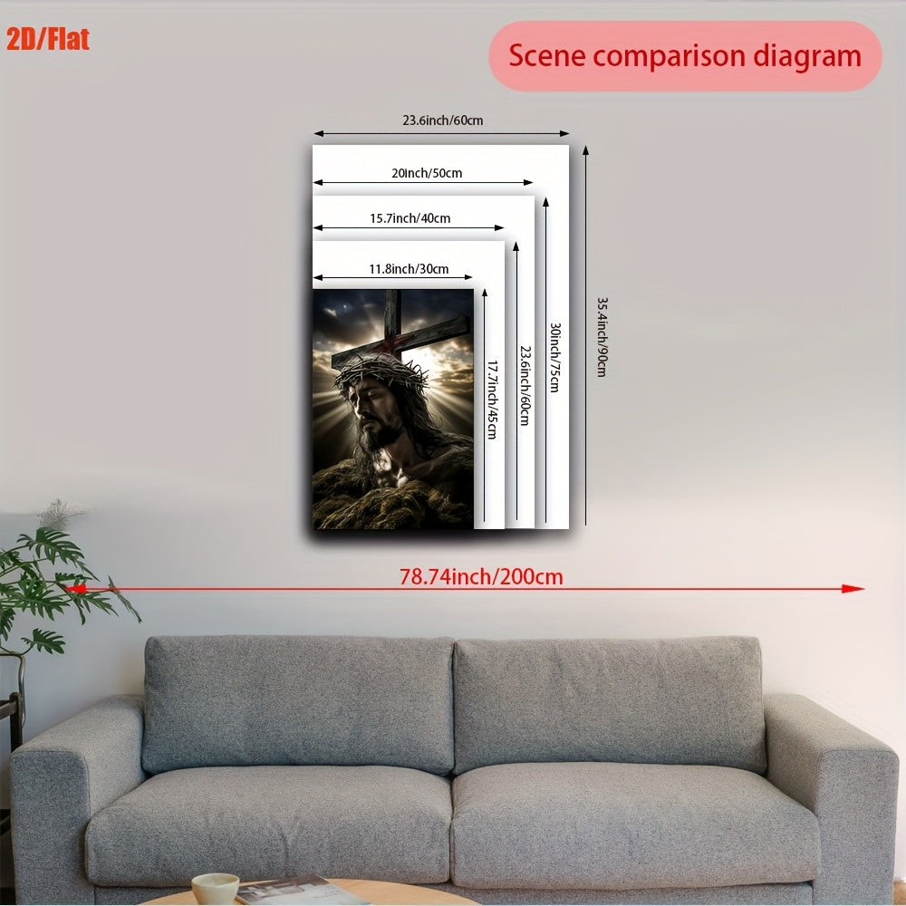 The framed 2D flat canvas adds elegance and durability, making it ideal for living rooms, offices, cafes, or prayer spaces. Its striking imagery captures the drama and majesty of the Crucifixion, offering both artistic beauty and devotional reflection.