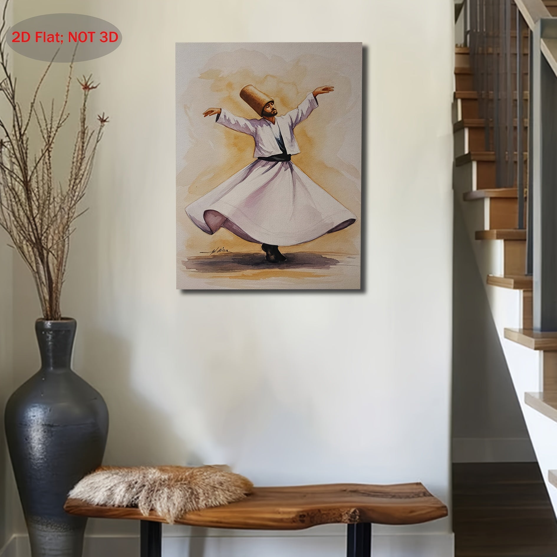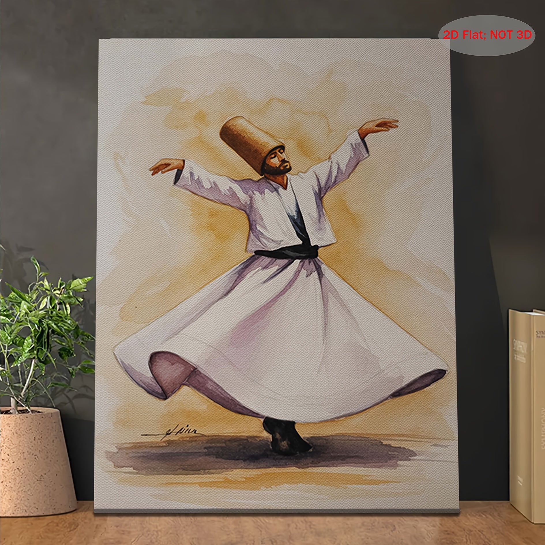 2D Flat 1pc Whirling Dervish Sufi Dance Mystic Turkish Cultural Wall Art Framed Canvas Painting 11.8x15.7 Inch for Bedroom Living Room Bathroom Kitchen Spiritual Gift