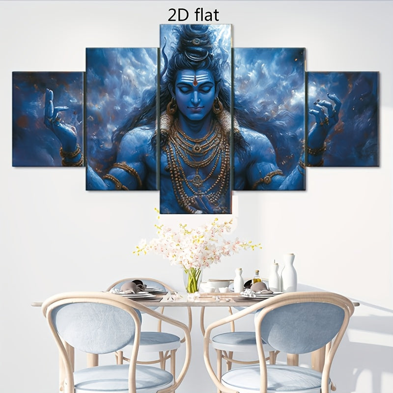 2D Flat 5pcs Frameless Canvas Hindu Shiva Portrait Statue Religious Theme Wall Art Spiritual Home Decor for Living Room Bedroom Office Dining Area Bar