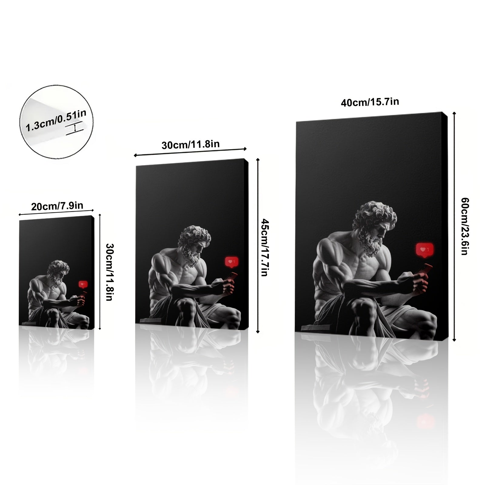 Bring a touch of mythological whimsy and modern creativity to your space with this 2D flat framed canvas artwork featuring Zeus, the king of the Greek gods, humorously depicted with a phone. This unique composition blends classical grandeur with contemporary charm, offering a playful yet elegant interpretation of the deity. The flat canvas surface preserves every sculptural detail and artistic nuance, creating a piece that is both visually striking and conversation-worthy.